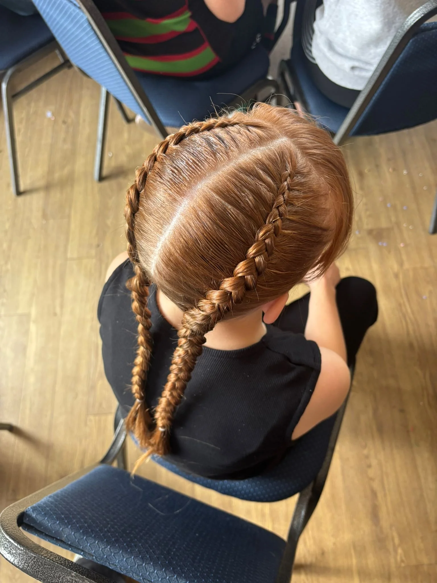 Our Braids and Brushes party is £250 for a mini (45-60 mins) braiding lesson and braids for 6 children. Age 10+